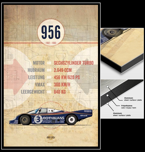 Aluminum Plate Porsche 956 Rothmans 40 x 60 cm