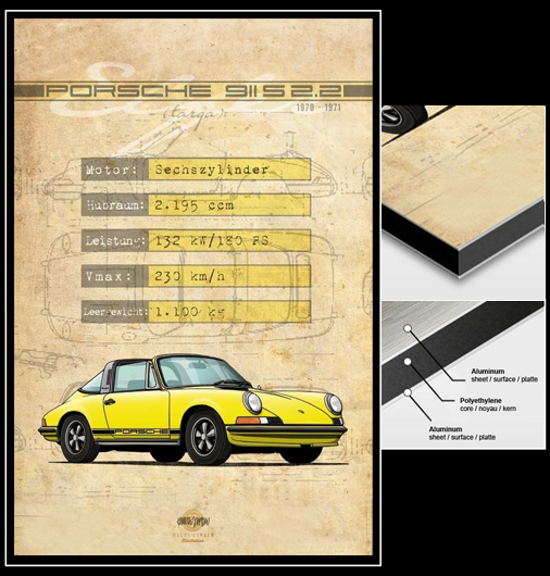 Aluminum Plate Porsche 911 S 2.2 40 x 60 cm