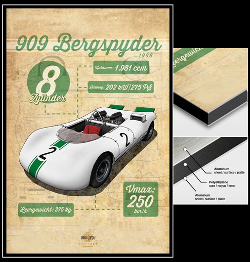 Aluminum Plate Porsche 909 Bergspyder 40 x 60 cm