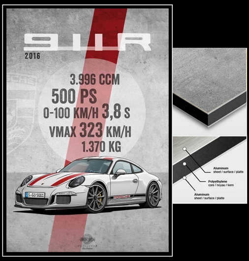 Aluminum Plate Porsche 911 R 2016 40 x 60 cm