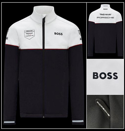 Veste homme Porsche x BOSS Tag Heuer Matière 100% polyester - Couleur Noir / Blanc / Détails Rouge - Fermeture zippée 2 grandes poches zippées - 1 poche intérieure zippée Porsche 249,95 € TTC / Incl. Taxes