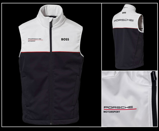 Veste sans manches mixte Porsche x BOSS Matière 100% polyester - Couleur Noir / Blanc / Détails Rouge - Fermeture zippée 2 grandes poches zippées - 1 poche intérieure zippée Porsche WAP430P0MS 179,95 € TTC / Incl. Taxes