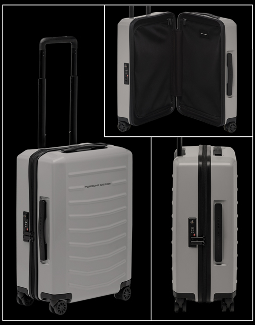Trolley Porsche RHS2 - Gris Craie Valise rigide ultralégère à 4 roulettes Poignée télescopique à 2 paliers en aluminium anodisé Revêtements interne et externe résistants et lavables Nombreux compartiments pratiques à l’intérieur Serrure à combinaison TSA séparée sur le compartiment principal Porsche Design RHS2 Taille L disponible