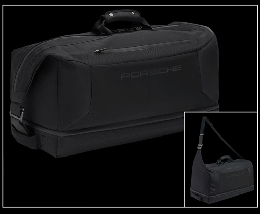 Sac de Voyage Porsche Classic Collection Weekender Nylon robuste avec détails en cuir de haute qualité - Couleur anthracite Nombreuses poches zippées - Compartiment rigide pour chaussures Trousse de toilette en cuir incluse 25 × 20 × 7 cm Poignées de transport en cuir robuste et une bandoulière à pince Dimensions: 58 × 27 × 27 cm - Volume 75 litres - Poids 3kg Porsche Design WAP0357160K 499,95 € TTC / Incl. Taxes