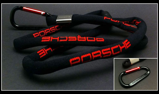 Porte-clés ruban tour de cou Porsche Racing Collection Tissu noir, section ronde Mousqueton en métal - Bague en métal gravée "Porsche" Convient pour toutes les clés et passe de course Porsche Porsche Design WAP0504100F 14,95 € TTC / Incl. Taxes