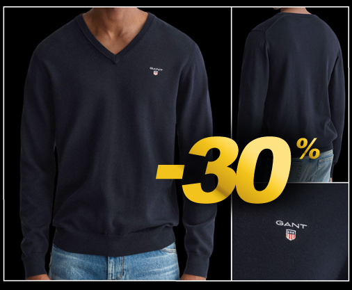 Pull homme Gant Couleur Noir - Matière 100% Coton - Col en V Gant 88162