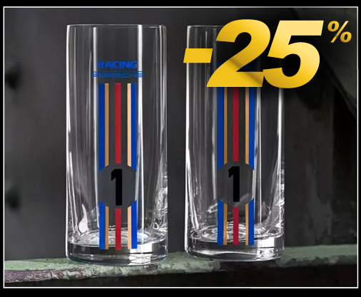 Set de 2 verres Porsche Racing Hauteur 16,5 cm - Diamètre 6,5 cm - En cristal soufflé Fabriqué en Allemagne - Porsche WAP0505030NRCG