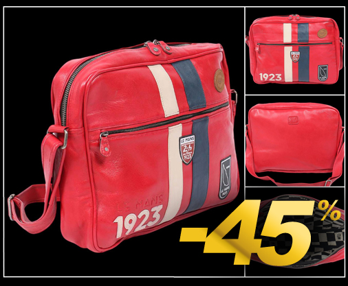 Sac Messenger en Cuir 24h Le Mans Matière 100% Cuir de mouton - Doublure 100% Coton - Couleur Rouge Bandoulière réglable - Dimensions 42 x 31 x 8 cm - Grand compartiment zippée 1 poche zippées à l'avant - 1 poche intérieure zippée Classic Legend Motors 27269-0282