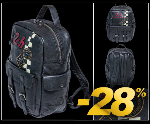 Sac à Dos en Cuir 24h Le Mans Matière 100% cuir de mouton - Doublure 100% Coton - 2 Couleurs disponibles Grand compartiment zippé - Dimensions 26 x 37 x 16 cm - Bretelles réglables 1 poche à l'avant zippée - 2 poches latérales Classic Legend Motors 27468-3046