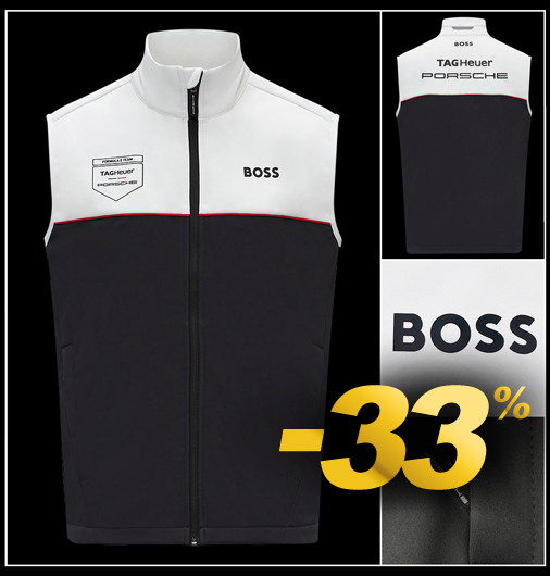 Veste sans manches mixte Porsche x BOSS Tag Heuer Matière 100% Polyester - Couleur Noir / Blanc / Détails Rouge - Fermeture zippée 2 grandes poches zippées - 1 poche intérieure zippée Porsche
