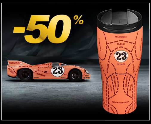 Mug isotherme Porsche 917 Pink Pig n°23 En acier inoxydable à double paroi - Couvercle étanche - Contenance 0,45 L Dimensions 9 x 8,5 x 18,7 cm - Couleur Rose Porsche WAP0506250L917