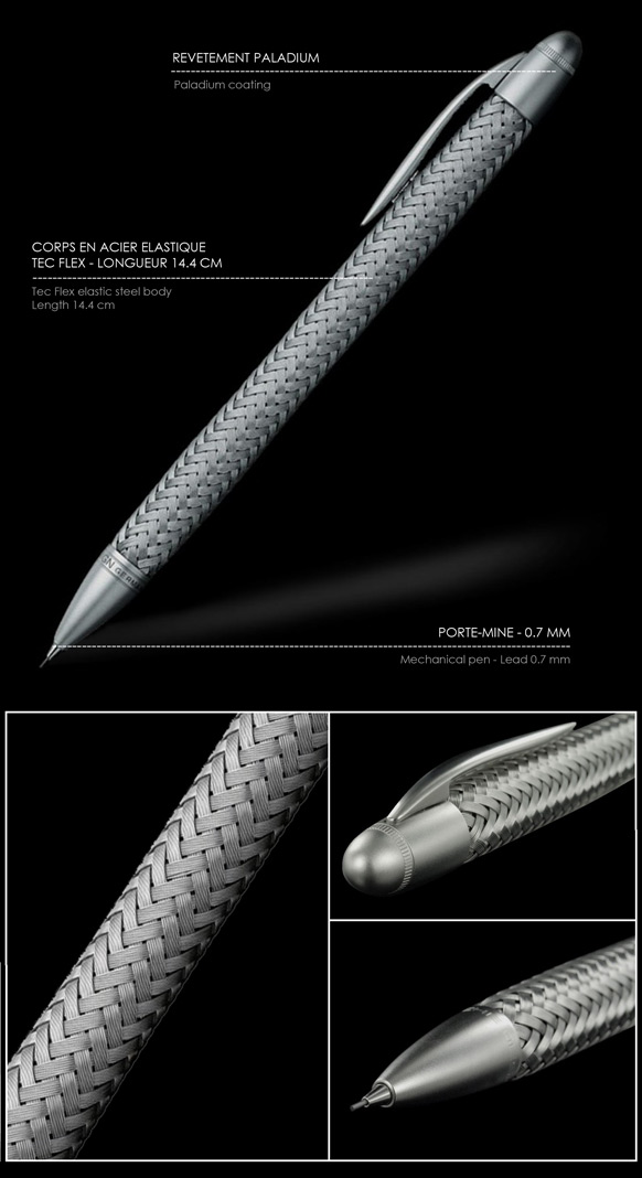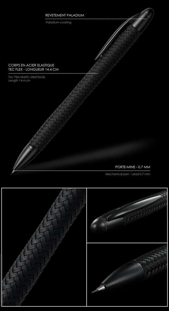Stylo porte-mine Porsche Design - Tec Flex acier P3110 Corps en acier élastique Tec Flex - Mine 0.7 mm Revêtement Palladium - Longueur 14,4 cm Fabriqué en Allemagne Porsche Design 988808