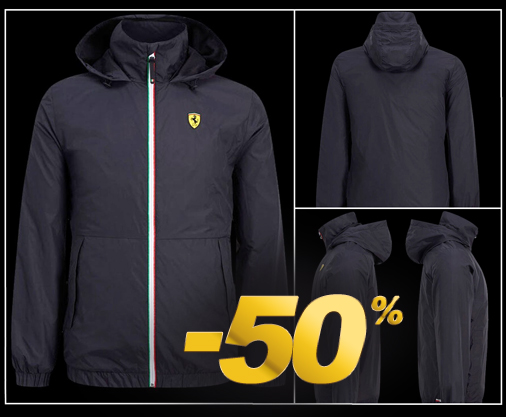 Veste homme Ferrari Matière 100% Nylon / Doublure mesh 100% Polyester Fermeture zippée - 2 poches extérieures zippées - Couleur Noir Ferrari 130191005100
