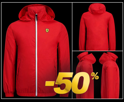 Veste homme Ferrari Matière 100% Nylon / Doublure 100% Polyester Fermeture zippée - 2 poches extérieures zippées - Couleur Rouge Ferrari 130191005600