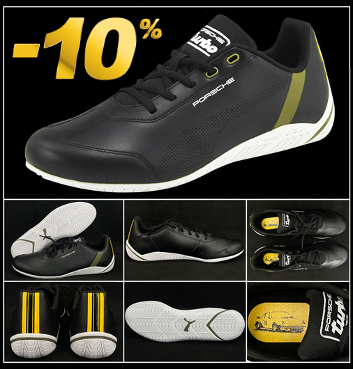 Chaussures homme Porsche Turbo by Puma Matière : Simili-cuir - Semelle caoutchouc Couleur Noir / Vert / Jaune Puma 307022-01