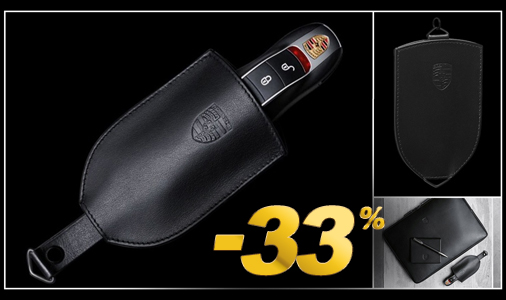 Etui Porte-clés Cuir Porsche Ecusson Porsche en relief - Cuir de vachette - Couleur Noir Porsche WAP0300370K