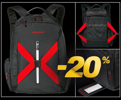 Sac à Dos Porsche Motorsport Collection Compartiment principal rembourré pour ordinateur portable Poche pour lunettes - 2 poches latérales et poche zippée devant Rabat avant avec organisateur et sangle pour casque, veste ou parapluie Porte étiquette d'adresse - Couleur noir - Dimensions 45 x 38 x 22 cm Porsche WAP0502300G
