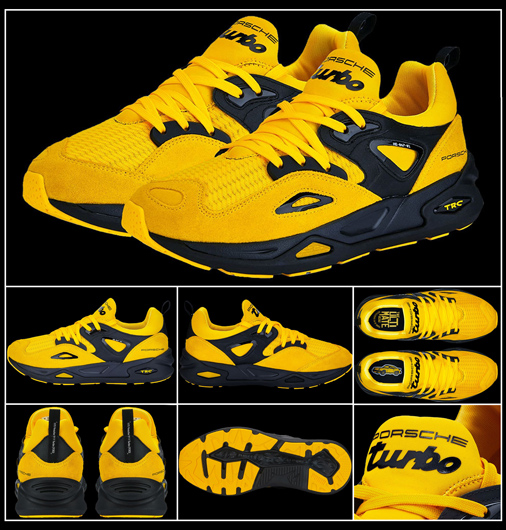 Chaussures homme Porsche Turbo TRC Blaze by Puma Matière Mesh / Simili cuir / Caoutchouc - Semelle épaisse amorti spécial confort Talon et bout renforcés - Couleur Jaune Chrome / Noir Puma 307386-01 129,95 € TTC / Incl. Taxes