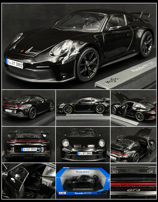 Porsche 911 GT3 2022 Noir Intense métallisé 1/18 - Maisto 36458BK Capot et portes ouvrants - Roues avant orientables - Direction fonctionnelle Suspension à ressort indépendante - Comprend un outil pour ouvrir les portes
