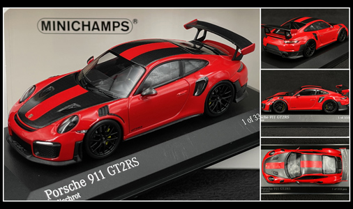 Porsche 911 GT2 RS Weissach 2018 Rouge Indien / Jantes grises 1/43 - Minichamps 413067290 49,95 € TTC / Incl. Taxes