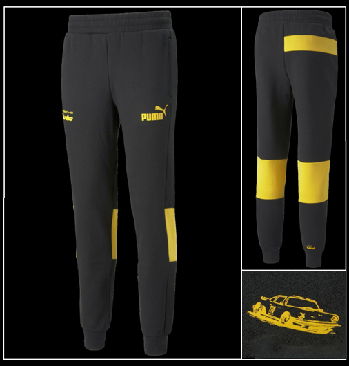 Pantalon homme Porsche Turbo by Puma Taille et chevilles élastiquées - 2 poches zippées Couleur Noir / Jaune - Matière 77% coton / 23% polyester Puma 533780-01 79,95 € TTC / Incl. Taxes
