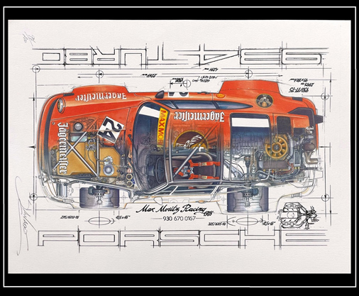 Reproduction d'une peinture originale de Sebastien Sauvadet Porsche 934 Turbo Jagermeister - Max Moritz 1976 30 x 40 cm - Papier 250 g/m2 29,95 € TTC / Incl. Taxes