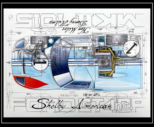 Reproduction d'une peinture originale de Sebastien Sauvadet Ford GT40 Mk II Gulf - Le Mans 1966 30 x 40 cm - Papier 250 g/m2 29,95 € TTC / Incl. Taxes