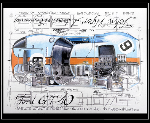 Reproduction d'une peinture originale de Sebastien Sauvadet Ford GT40 Mk II Gulf - Le Mans 1969 30 x 40 cm - Papier 250 g/m2 29,95 € TTC / Incl. Taxes