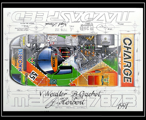 Reproduction d'une peinture originale de Sebastien Sauvadet Mazda 787B Mazdaspeed - Le Mans 1991 30 x 40 cm - Papier 250 g/m2 29,95 € TTC / Incl. Taxes
