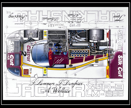 Reproduction d'une peinture originale de Sebastien Sauvadet Jaguar XJR-9 Walkinshaw - Le Mans 1988 30 x 40 cm - Papier 250 g/m2 29,95 € TTC / Incl. Taxes