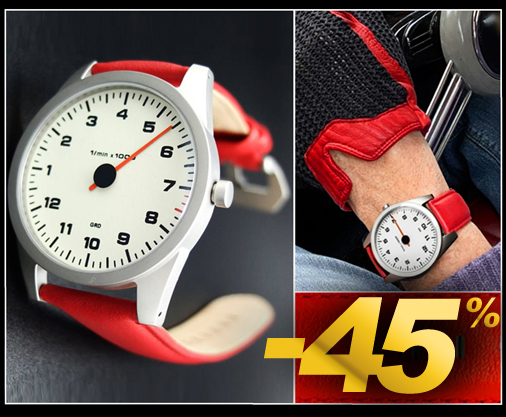 Montre compte-tours mono-aiguille Inspiration Porsche 993 Outlaw Mouvement quartz Ronda 762 Swiss-made - Bracelet cuir rouge Boitier en acier inoxydable PVD argent - Saphir très résistant, traité anti-rayures et anti-reflets Etanche jusqu'à 10 ATM - Diamètre 43 mm - Garantie 12 mois Livré dans sa boite de présentation