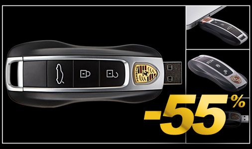 Clé USB Porsche Clé de contact Capacité de stockage 64 Go - Prise USB rétractable - Couleur Noir / chrome Porsche WAP0507150M001
