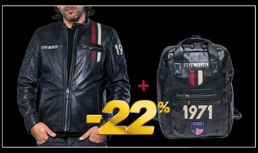 Veste Cuir + Sac à Dos Steve McQueen Matière 100% Cuir Couleur Noir Classic Legend Motors
