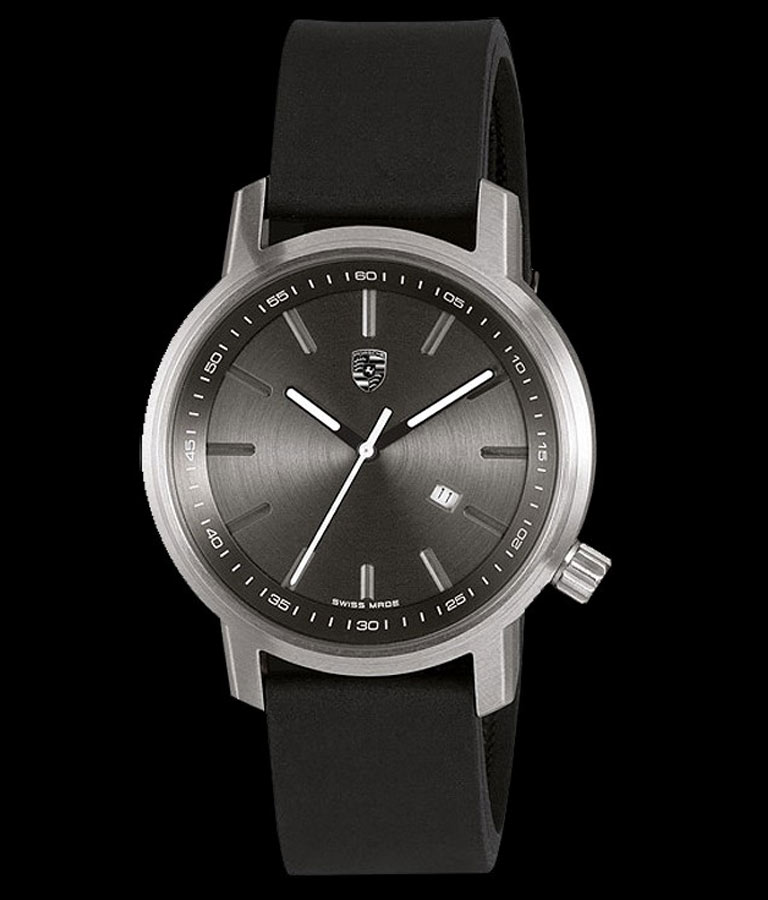 - Mouvement quartz Suisse Ronda - Bracelet caoutchouc noir - Verre minéral avec revêtement en saphir d'un côté - Boîtier en acier inox satiné - La gravure sur la base comprend le numéro de série - Boucle déployante en acier inoxydable avec gravure "PORSCHE" - Boîtier étanche 5 ATM - Diamètre 38 mm - Hauteur 10 mm - Fabriqué en Suisse - Garantie 2 ans - Porsche Design WAP0700020G