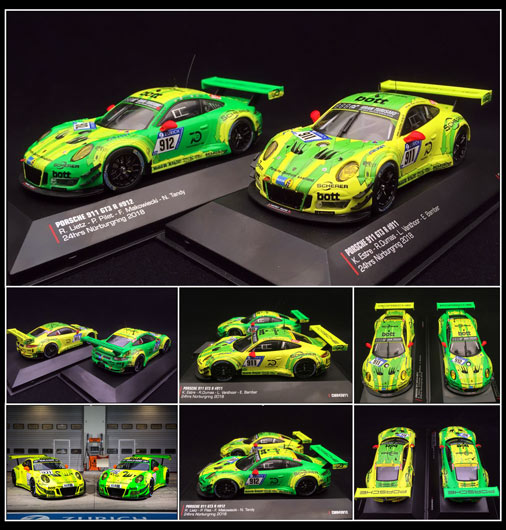 Duo 991 GT3 R n° 911 & 912 - Manthey racing 24h Nürburgring 2018 1/43 - IXO 43011 / 43012