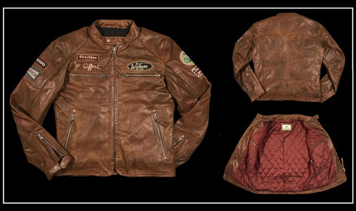 Veste pilote Jo Siffert Classic driver pour homme Look vintage avec badges brodés années 60 Couleur marron / finition vieilli Matière cuir de chèvre de qualité Doublure matelassée Fabriquée à la main