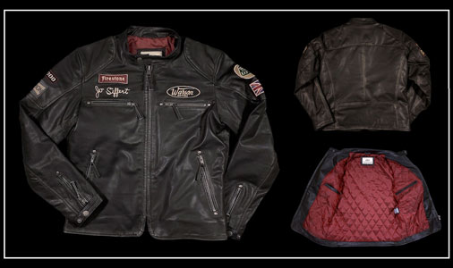 Veste pilote Jo Siffert Classic driver pour homme Look vintage avec badges brodés années 60 Couleur noir / finition vieilli Matière cuir de chèvre de qualité Doublure matelassée Fabriquée à la main