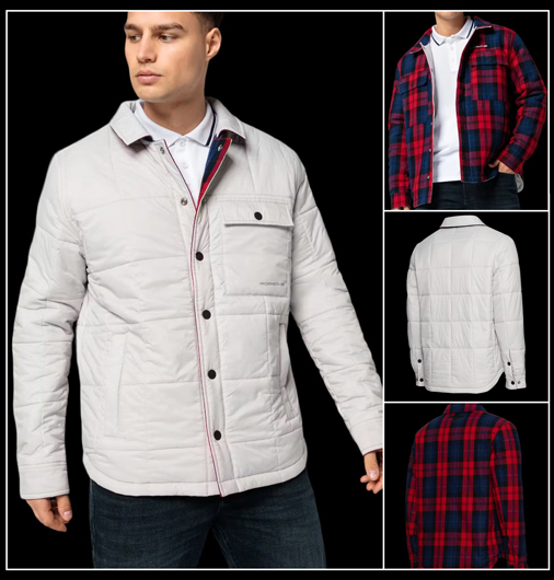 Veste réversible homme Porsche 911 Turbo n°1 Hommage à l'intérieur de la 1ère 911 Turbo par son motif tartan écossais Matière 100% Nylon - Doublure 100% Coton - Couleur Gris / Carreaux tartan écossais Fermeture principale zippée - 2 poches latérales - 1 poche poitrine Porsche WAP350RTN1 299,95 € TTC / Incl. Taxes