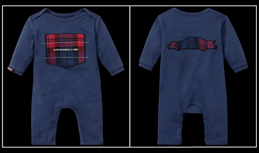 Grenouillère pour bébé Porsche 911 Turbo n°1 Hommage à l'intérieur de la 1ère 911 par son motif écossais Couleur Bleu Marine / Tartan - Matière 100% Coton Porsche WAP3600260RTN1 54,95 € TTC / Incl. Taxes