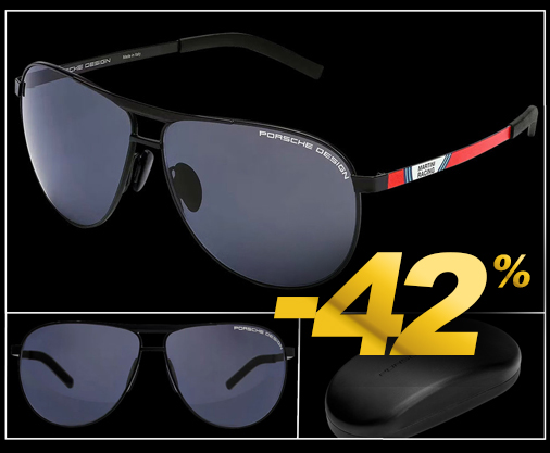 Lunettes de Soleil Porsche Martini Racing Protection anti-UV 100% - Normes européennes - Verre polarisant et anti-reflets Monture Noir mat en acier inoxydable - Branches Rouge / Blanc / Bleu Fabriquées en Italie - Porsche WAP0750010P0MR