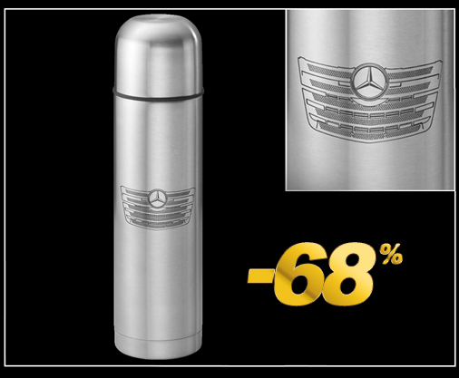 Bouteille Thermos Mercedes Matière acier inoxydable - Couleur Gris argent / Noir Contenance 750 ml - Couvercle utilisable comme tasse Mercedes-Benz B67870655