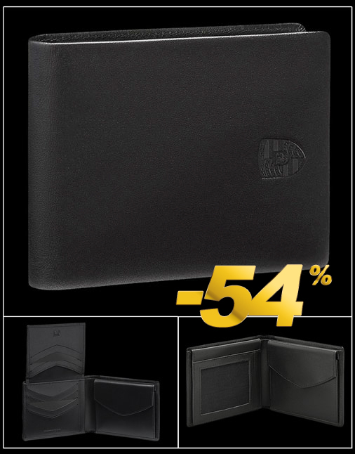 Portefeuille en Cuir Porsche Ecusson 8 poches de cartes de crédit - 1 Compartiment billets 1 Poche monnaie fermée - 1 Poche carte d'identité Couleur noir - Matière cuir vachette Porsche WAP0300310K