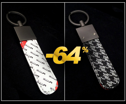 Porte-clés Porsche 911 R Matière cuir / acier inoxydable - Face arrière en tissu original pepita Métal aspect mat - Taille 9,5 x 2,5 cm Porsche WAX01010003
