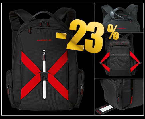 Sac à Dos Porsche Motorsport Collection Compartiment principal rembourré pour ordinateur portable Poche pour lunettes - 2 poches latérales et poche zippée devant Rabat avant avec organisateur et sangle pour casque, veste ou parapluie Porte étiquette d'adresse - Couleur noir - Dimensions 45 x 38 x 22 cm Porsche WAP0502300G