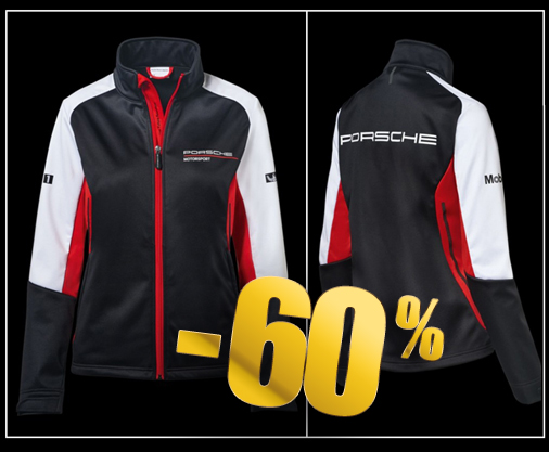 Veste femme Porsche Motorsport Collection Couleur noir / rouge / blanc - Matière 100 % polyester Softshell Bouchons d'oreilles - Lanière et chiffon de nettoyage pour lunettes Intérieur microfibre - Support fil casque / écouteurs Porsche WAP806