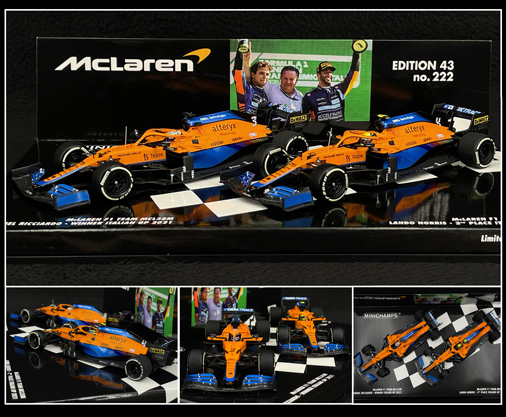 Set Ricciardo / Norris McLaren MCL35M F1 n°3 & 4 Winner & 2nd Italy GP 2021 - 1 : 43