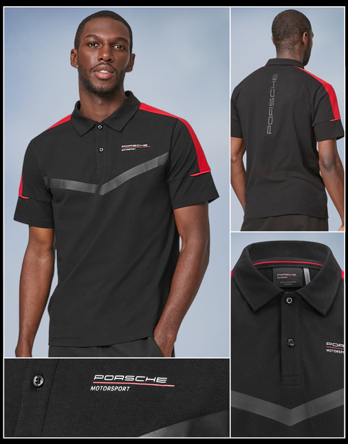 Polo homme Porsche Motorsport Tissu élastique confortable et respirant - Matière 95% coton / 5% elasthane Inscription Porsche dans le dos - Couleur Noir / Rouge 64,95 € TTC / Incl. Taxes