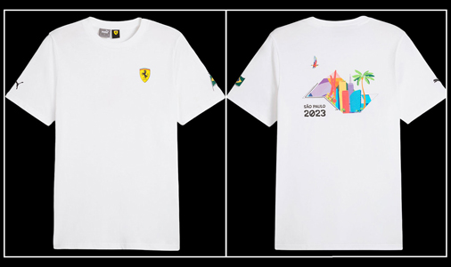 T-shirt homme Ferrari F1 GP Brésil 2023 Matière 75% coton / 25% polyester - Couleur Blanc Puma 701227706-001 49,95 € TTC / Incl. Taxes