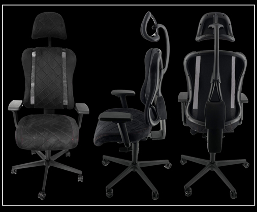 Fauteuil de Bureau Headpoint GTS - Noir / surpiqûres rouge carmin Réglage synchrone de l'inclinaison de l'assise et du dossier - système de fixation en continu Conçu pour une durée d'assise très longue Avec appuie-tête et accoudoirs réglables Dossier en résille et rembourré pour un soutien optimal du dos Assise galbée réglable en hauteur - Revêtements style Alcantara Piétement étoile avec 5 roulettes doubles Poids : 19kg - LxHxP : 50 x 121/150 x 47 cm Made in Germany - Garantie 3 ans 599,95 € TTC / Incl. Taxes