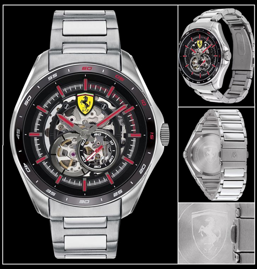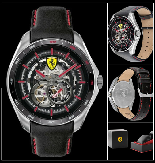 Montre Automatique Ferrari Speedracer Cadran squelette apparent à plusieurs niveaux - Bracelet en cuir noir Boucle déployable en acier inoxydable - Verre antireflets - Couleur : Noir / Argent Boîtier étanche à 100 mètres - Diamètre 44 mm - Garantie 2 ans Ferrari FE0830687 399,95 € TTC / Incl. Taxes